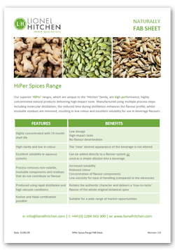 Our superior ‘HiPer’ ranges, which are unique to the ‘Hitchen’ family, are high performance, highly concentrated natural products delivering high-impact taste. Manufactured using multiple process steps including molecular distillation; the reduced time during distillation enhances the flavour profile, whilst insoluble residues are removed, resulting in low colour and excellent solubility for use in beverage flavours.