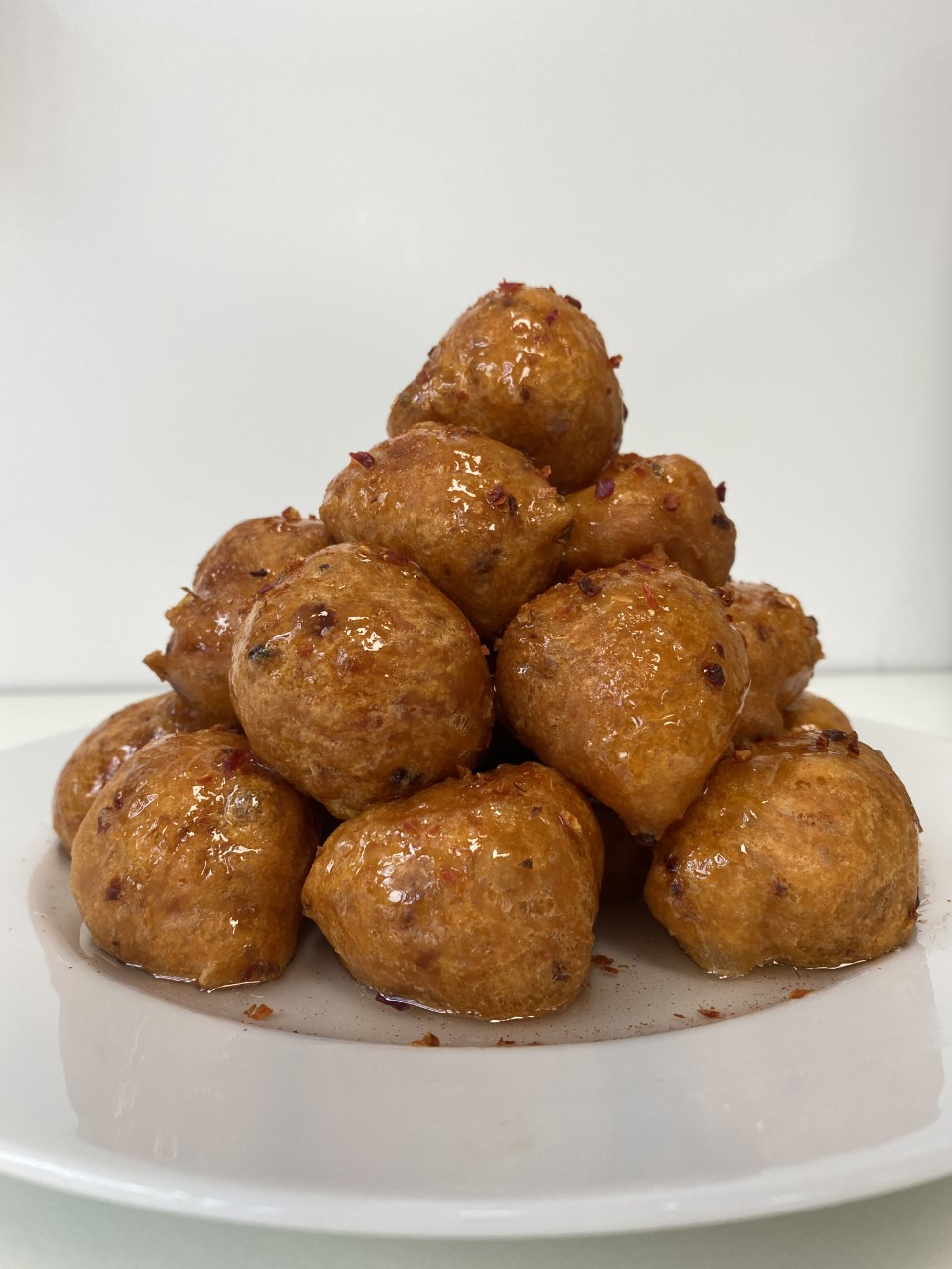 - Fry about 6 Loukoumades at one time for about 5-6 minutes.