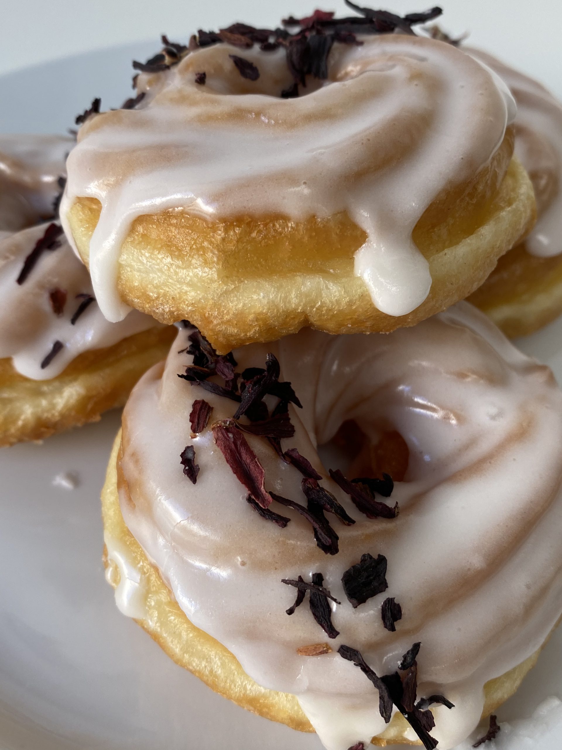 - Once the doughnuts have cooled gently dip them into the glaze to over the top.